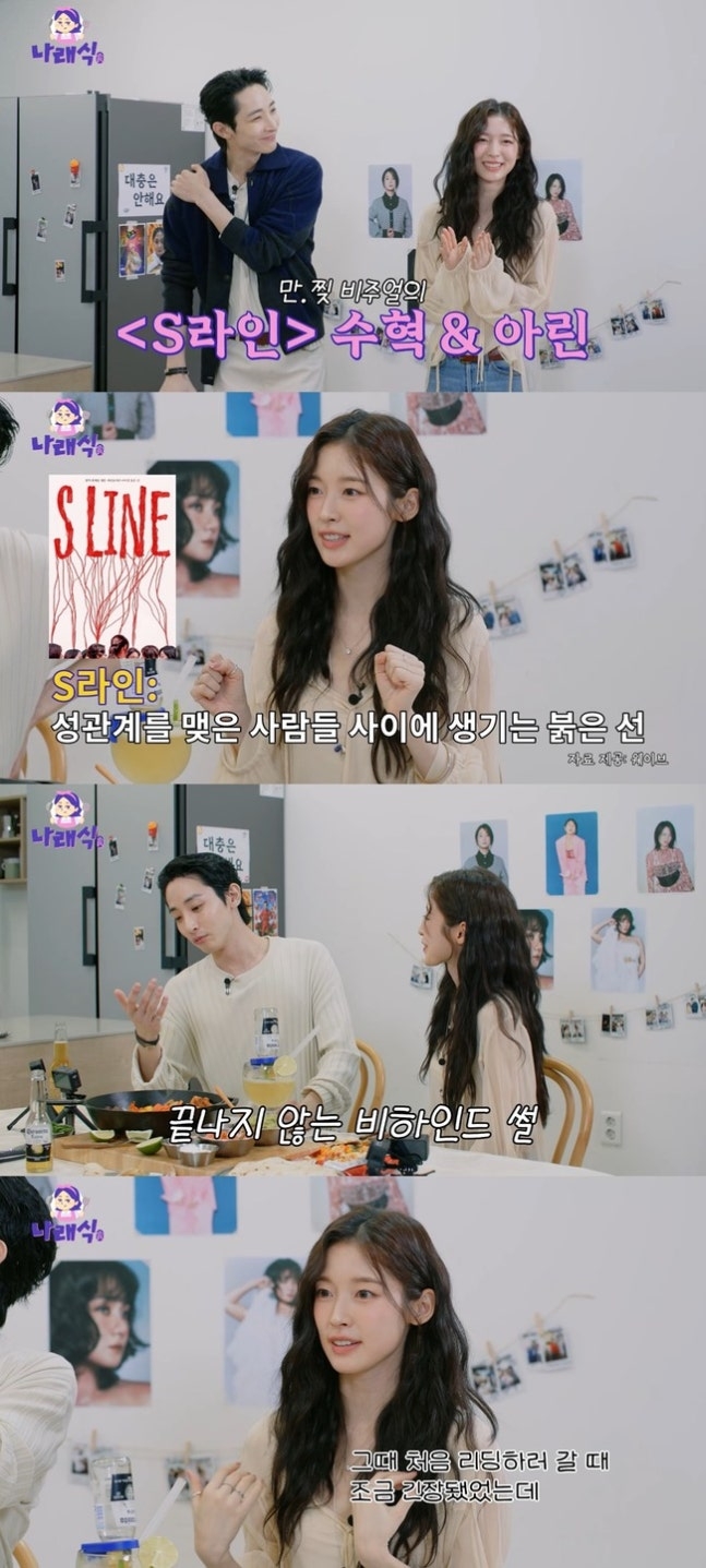 이날 아린은 ”처음 대본 리딩하러 갈 때 조금 긴장됐었는데 선배님이 농담하면서 많이 풀어줬다“며 이수혁에게 고마움을 전한다.