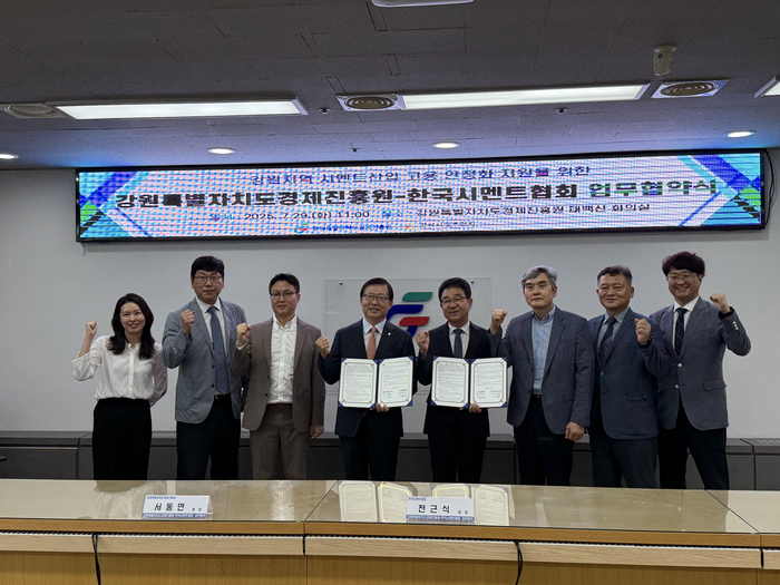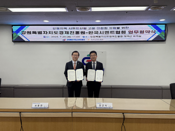 [스포츠서울ㅣ원주=김기원기자]강원특별자치도경제진흥원(원장 서동면)과 한국시멘트협회(회장 전근식)는 7월 29일 강원지역 시멘트산업의 고용안정 및 지역경제 활성화 지원을 위한 업무협약(MOU)을 체결했다.