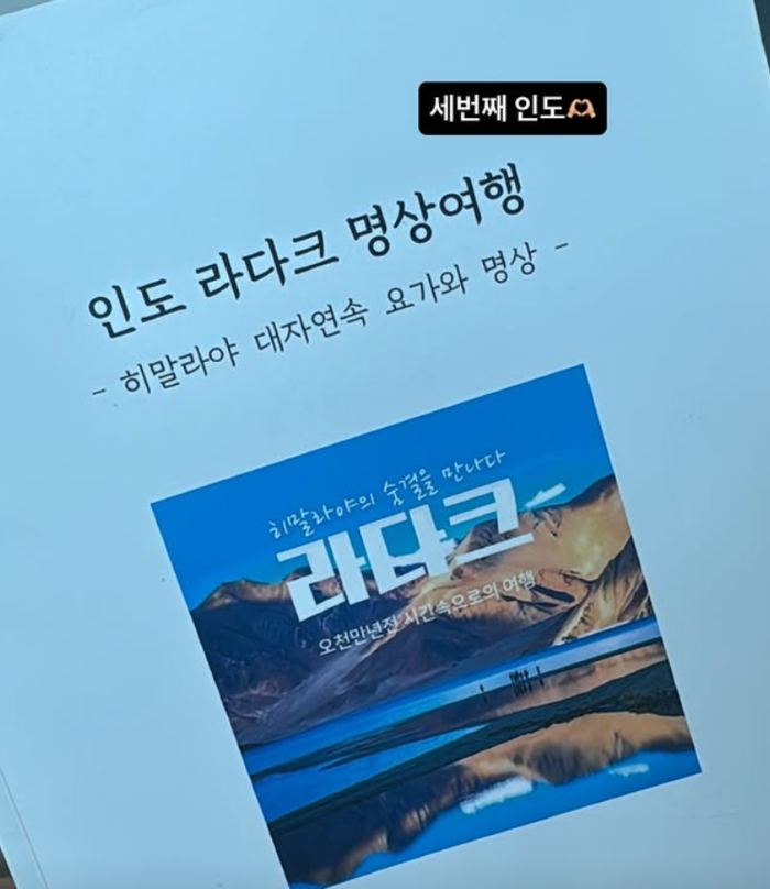 하니는 29일 자신의 SNS 계정 스토리에 “세 번째 인도”라는 멘트가 적힌 문서 사진 하나를 공개했다. 해당 문서에는 ‘인도 라다크 명상 여행’이라고 적혀 있으며 하니는 최근 수료한 요가 지도자과정의 마지막 코스가 인도 졸업여행을 떠나는 것으로 보인다.
