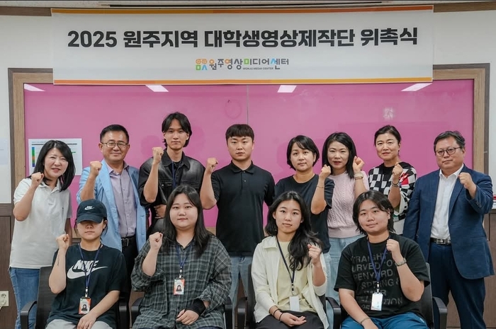 [스포츠서울ㅣ원주=김기원기자]원주영상미디어센터(센터장:김동규)는 28일 원주지역 대학생영상제작단 위촉과 출범식을 가졌다. 원주지역 대학생 영상제작단은 원주 문화예술 전시·공연 아카이빙 활동을 하게 되며 한라대, 상지대, 강릉원주대 학생 13명으로 구성됐다.