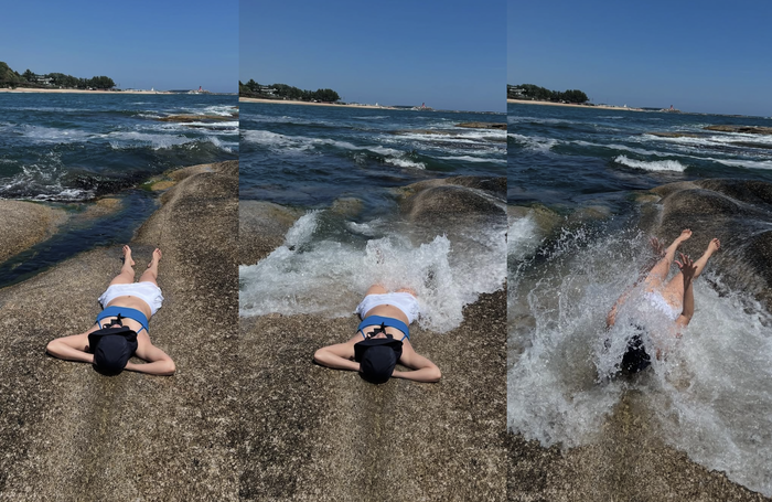 눈길을 끄는 건 이은지가 해변에 누워있다가 다가온 파도에 완전히 밀려나는 재미있는 모습이었다. 대부분의 스타들이 비키니 패션으로 몸매를 뽐낼 때 웃음을 주기 위해 몸을 내던진 뼛속까지 코미디언인 이은지의 모습이 인상적이었다.