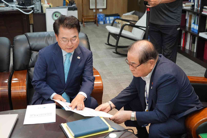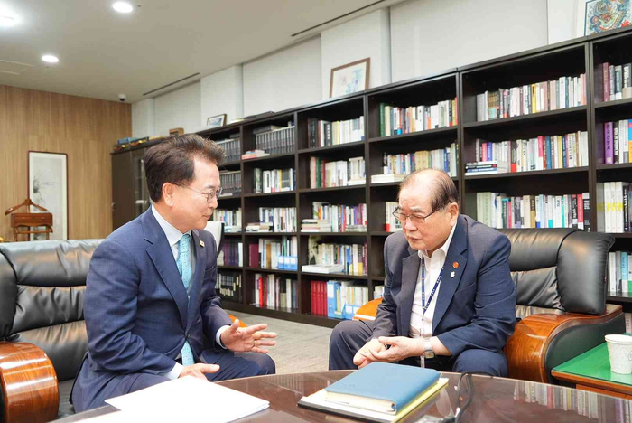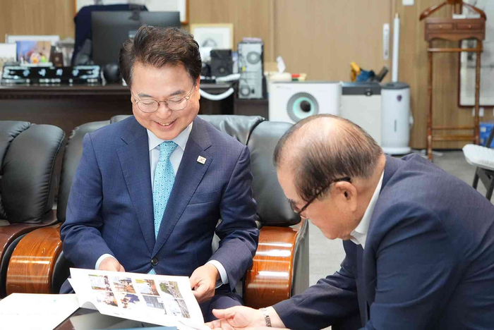 [스포츠서울ㅣ춘천=김기원기자]육동한 춘천시장은 30일(화) 서울 광복회관을 방문해 이종찬 광복회장을 예방하고, 춘천시의 ‘광복 80주년 태극기 선양운동’에 대해 설명하고 광복회의 협력을 요청했다.