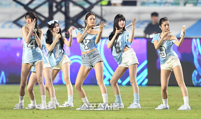 아이브가 30일 수원월드컵경기장에서 열린 2025 쿠팡플레이시리즈 팀K리그와 뉴캐슬 유나이티드FC의 친선경기에서 하프 타임 공연을 하고 있다. 2025. 7. 30.