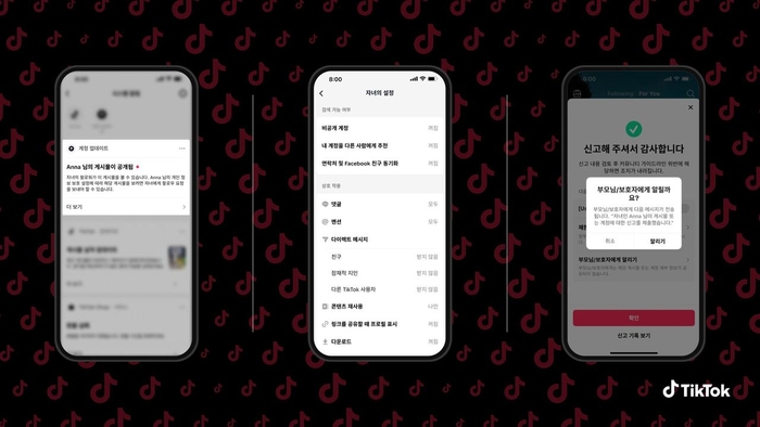 특히 앞서 발표한 자녀의 ‘콘텐츠 신고 알림’ 기능은 전 세계적으로 확대 적용한다. 이는 자녀의 온라인 활동에 대한 인지를 높이는 데 목적으로, 자녀가 틱톡 내 콘텐츠를 신고할 경우 보호자에게 알림을 전송한다.