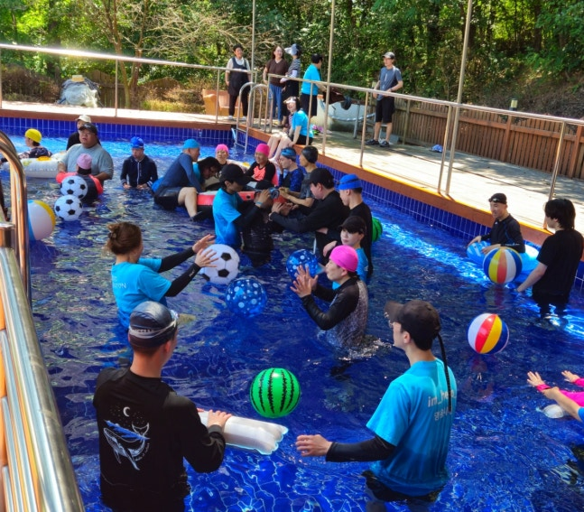 올해로 벌써 4회차를 진행한 물놀이 봉사 ‘첨벙첨벙 물놀이’는 거동이 불편해 수영장 이용이 어려운 환경에 놓인 이용인들을 위한 행사다. 안산영웅시대는 1대 1 매칭으로 공놀이, 튜브놀이, 간식 등을 함께 하며 온정을 나눴다.