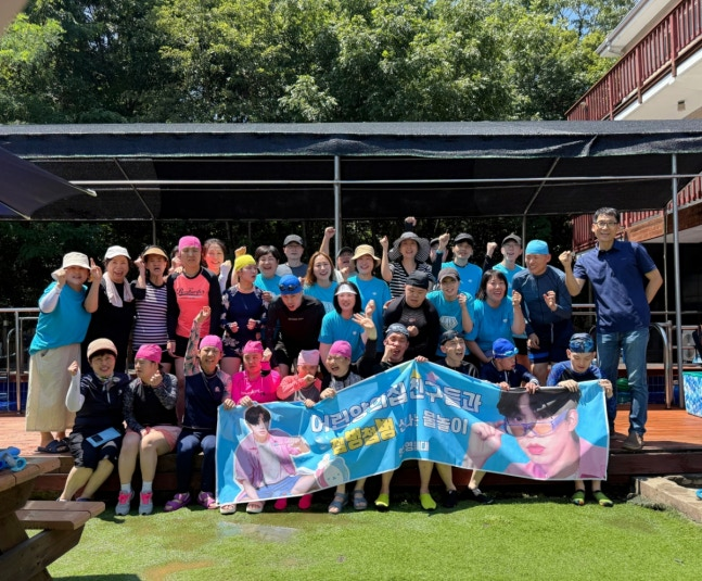 임영웅 팬클럽 안산영웅시대는 지난 28일 경기도 안산지 단원구 사회복지법인 강물 어린양의집에서 물놀이 봉사에 나섰다.
