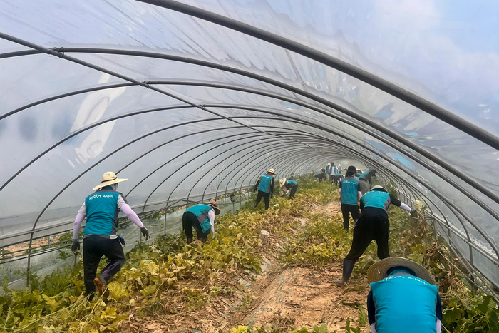 충남 예산군은 최근 기록적인 폭우로 다수 농가가 침수 피해를 입었다. 특별재난지역으로 지정됐다. 피해 농민의 어려움을 조금이나마 덜기 위해 한국마사회 직원이 나섰다. 봉사단 30여 명이 참여해 집중호우로 피해를 입은 농가 하우스 비닐 철거 등 복구 작업을 도왔다. 이들은 주변 토사와 안전사고 가능성이 있는 시설물까지 정리하는 등 온 힘을 기울였다.