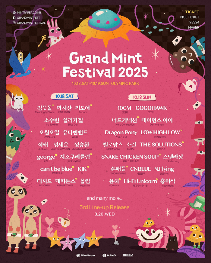 10월 18~19일 양일간 송파구 올림픽공원에서 펼쳐지는 ‘그랜드 민트 페스티벌 2025(Grand Mint Festival 2025)’의 3차 라인업은 다가오는 8월 20일 공개될 예정이다. roku@sportsseoul.com