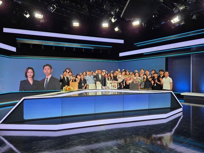 마지막 방송 이후 뉴스룸 현장에서는 제작진과 동료들의 감사와 축하가 이어졌다.