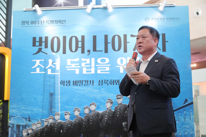 [스포츠서울ㅣ춘천=김기원기자]광복 80주년을 기념한 특별기획전 ‘벗이여, 나아가자 조선 독립을 위하여!’가 4일 춘천시청 1층 로비에서 개막했다.