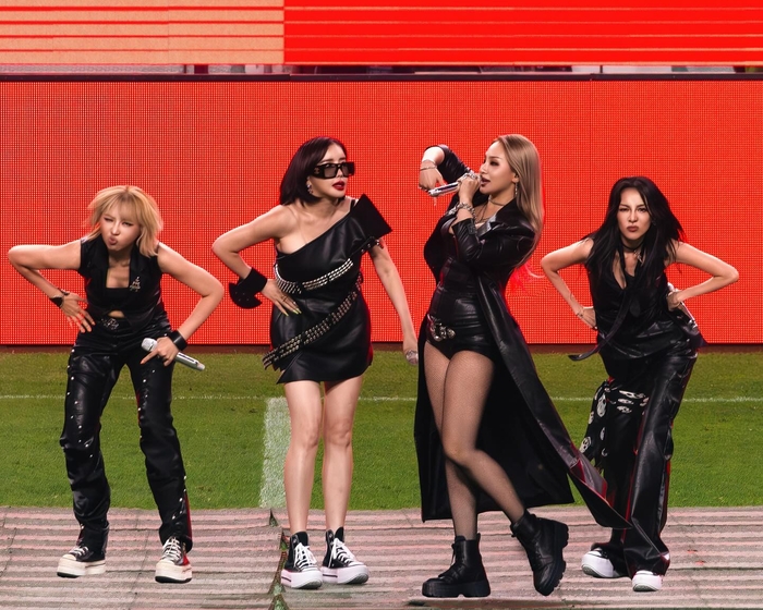 현장에선 씨엘, 박봄, 산다라박, 공민지 4명의 멤버가 모두 블랙 가죽 의상으로 무장하고 카리스마 넘치는 무대를 선보였다. 이날 2NE1은 강렬한 퍼포먼스와 독보적 존재감으로 시선을 압도했다. 멤버들은 그라운드 위 당당한 모습, 그리고 경기장을 가득 메운 팬들의 환호를 배경으로 최고의 순간을 만들어냈다.