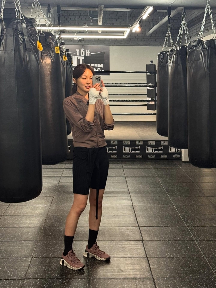 금새록은 블랙 아웃도어 재킷과 반바지, 헤드밴드 등 실용적인 운동복을 착용하고 거울 앞에서 셀카를 남기는 가 하면, 또 다른 사진에서는 운동 후 바닥에 누워 휴식을 취하는 모습도 보였다. 특히 복싱 글러브와 손에 테이핑을 감고 링 앞에서 포즈를 취하는 등 뜨거운 복싱 열정을 드러냈다.