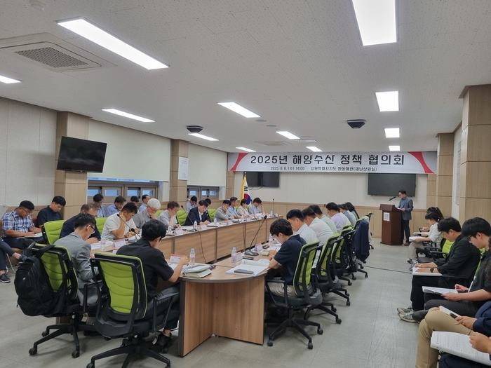 [스포츠서울ㅣ춘천=김기원기자]강원특별자치도(도지사 김진태)는 8월 6일(화) 오후 2시, 글로벌본부 환동해관 재난상황실에서 「2025 해양수산정책협의회」를 개최하고, 도내 14개 시군 해양수산 부서와 함께 2026년도 신규 해양수산사업 발굴에 본격 착수한다.