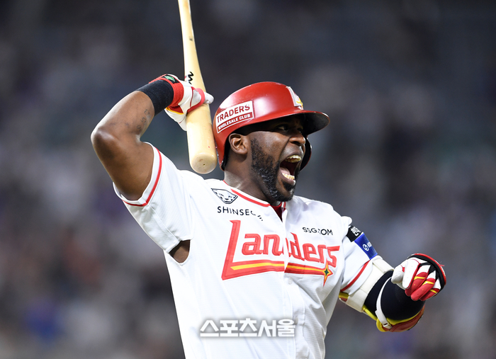 SSG 에레디아가 6일 인천 SSG랜더스필드에서 열린 2025 KBO리그 삼성과의 경기 6회말 무사 1루 상황에서 자신의 홈런성 타구가 삼성 우익수 김성윤에게 잡히자 아쉬워하고 있다. 2025. 8. 6.