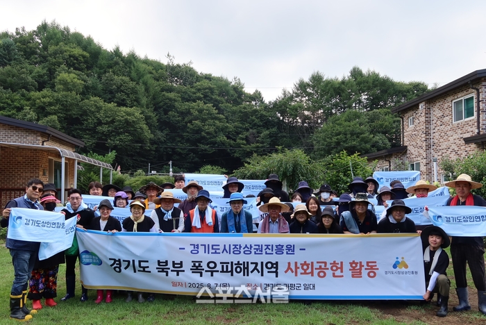 〔스포츠서울│수원=좌승훈기자〕경기도시장상권진흥원은 지난달 20일 집중 호우로 극심한 피해를 입은 가평군이 빠르게 피해를 회복하고 일상으로 돌아올 수 있도록 7일 지역 상인회 단체와 함께 수해복구 봉사활동을펼쳤다.