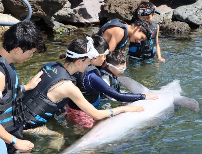 공개한 사진에는 이현이와 가족이 하와이 바닷속에서 돌고래와 교감하는 모습이 담겼다.