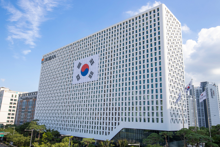 호반그룹은 지난 7일 서울 서초구 호반파크(본사 사옥) 외벽에 가로 24m, 세로 16m 크기의 대형 태극기를 설치했다.