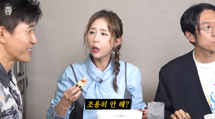 이날 영상에선 코요태 김종민, 빽가, 신지가 방송인 김대희의 부캐 꼰대희와 함께 식사하는 모습이 담겼다.