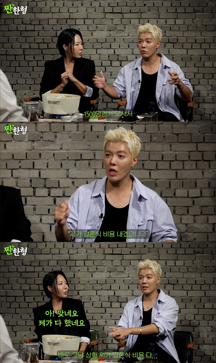 이어 강남은 “결혼식 비용 플러스 미리 냈던 신혼여행 비용까지 해서 상화씨가 다 냈다”고 설명했다.