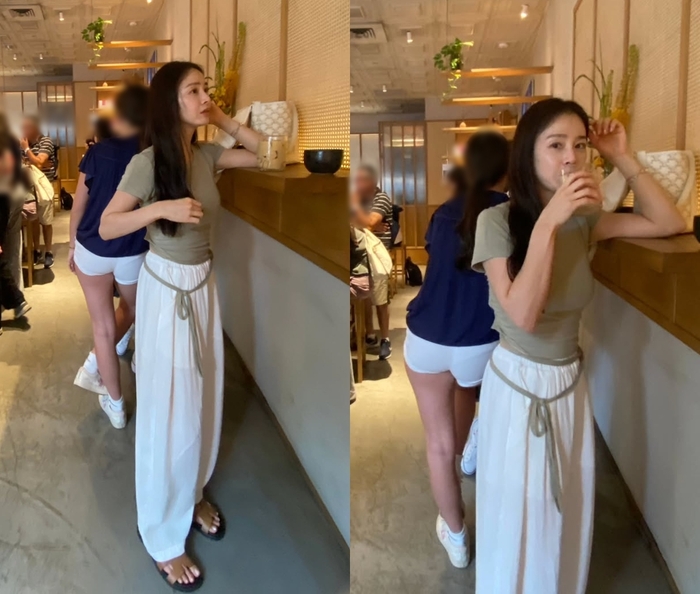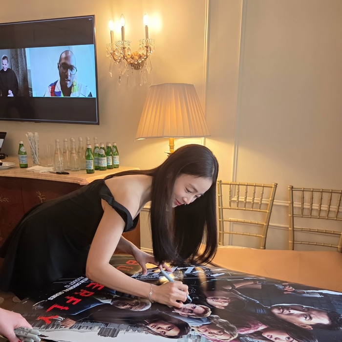 연한 올리브색 반팔 티셔츠에 흰색 와이드 팬츠를 매치한 편안한 일상 패션으로 선글라스로 포인트를 준 모습이다. 뉴욕 곳곳에서 자연스럽게 촬영한 일상 사진이지만, 김태희의 우월한 비주얼은 시선을 뗄 수 없게 만든다. 블랙 드레스 차림의 사진은 또 다른 매력을 안긴다. 포스터에 사인을 하는 모습인데, 카메라를 보며 짓는 김태희의 환한 미소가 ‘러블리’ 그 자체다. 한국을 대표하는 스타다운 압도적인 미모다.