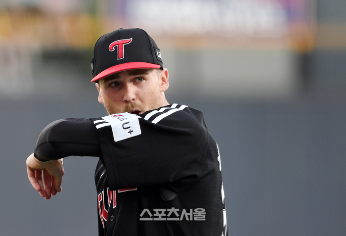 LG 톨허스트가 12일 수원 KT위즈파크에서 열린 2025 KBO리그 KT와의 경기 1회말 수비를 마친 뒤 더그아웃으로 들어가고 있다. 2025. 8. 12.