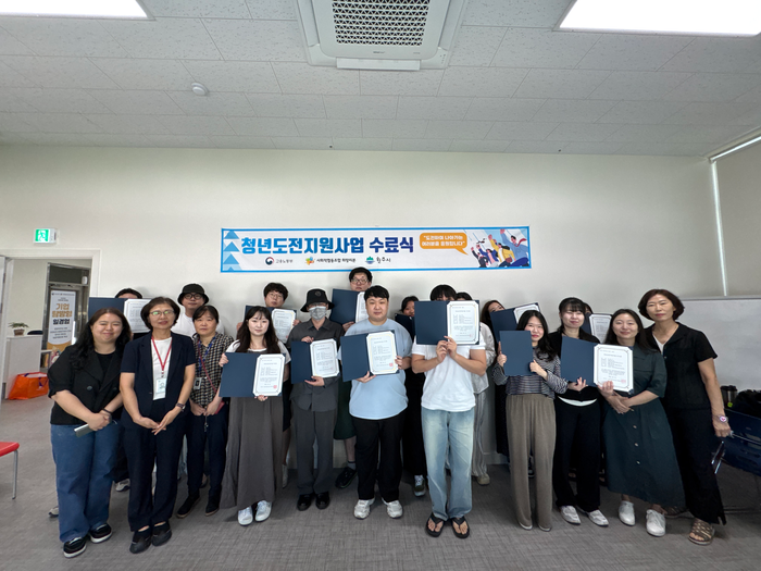 [스포츠서울ㅣ원주=김기원기자]2025년 청년도전지원사업 장기 과정 1기 수료식이 지난 12일 사회적협동조합 희망리본 원주센터에서 개최됐다.