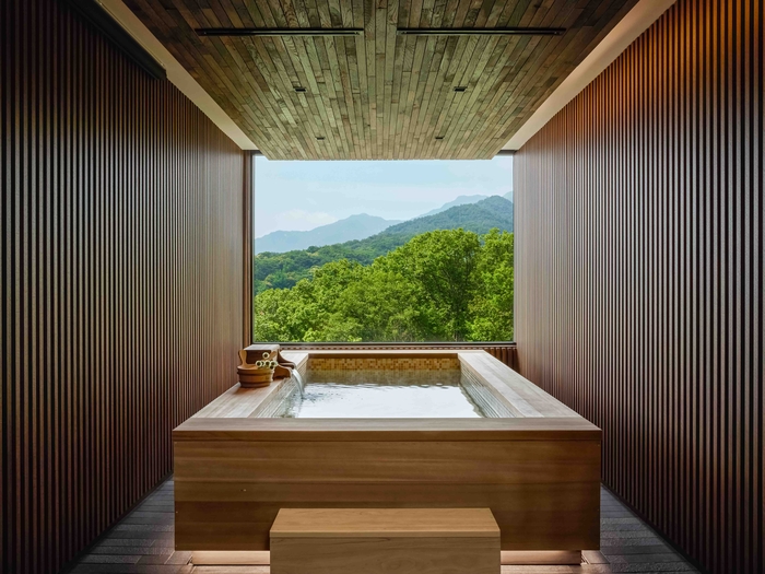 인피니티풀과 편백나무(히노끼)탕 등 다양한 부대시설을 갖췄다. 객실에서 울창한 숲을 바라보며 즐기는 히노끼탕은 특히 인기가 높다.