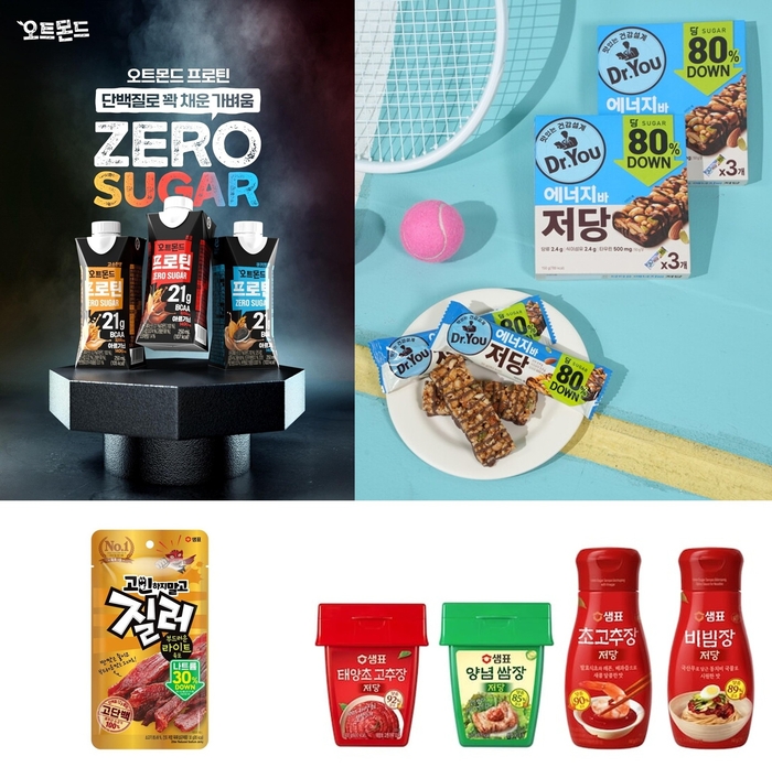 샘표는 당 함량은 대폭 낮추고 장맛은 제대로 살린 저당 장류 4종을 선보였다. 이번 신제품은 ‘저당 태양초 고추장’, ‘저당 양념쌈장’, ‘저당 초고추장’, ‘저당 비빔장’으로, 4종 모두 100g당 당 함량은 2g~5g 수준이다. 여름에 즐기기 좋은 저당 초고추장은 기존 대비 당류를 90%나 줄였다.