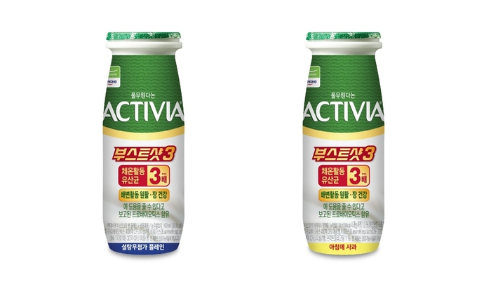 풀무원다논 액티비아(ACTIVIA)의 신제품 ‘액티비아 부스트샷3’는 브랜드 핵심 유산균을 액티비아 병 플레인 제품 대비 3배(30억 CFU 이상/병) 담아내 대표적인 헬씨그레이드 제품으로 꼽힌다.