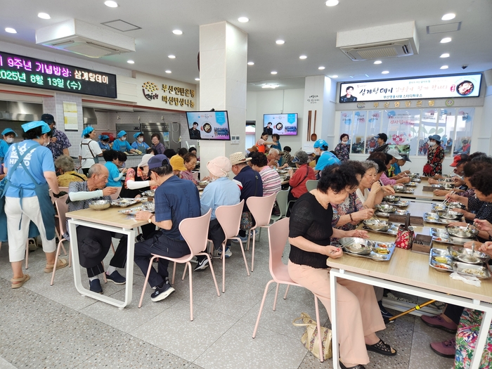 부산영웅시대 스터디하우스는 지난 13일, 정기 봉사활동을 이어온 부산연탄은행 밥상공동체(대표 강정칠 목사)에 특별 후원금 300만원과 부채 200개를 전달하고, 삼계탕을 대접하는 도시락 나눔 봉사를 진행했다. 이번 봉사는 48회차에 해당한다.
