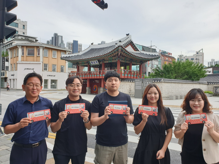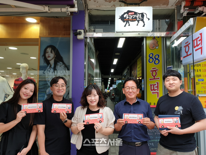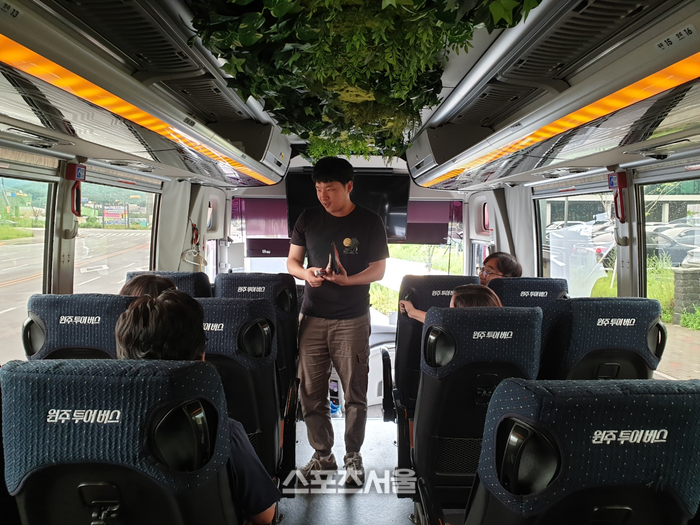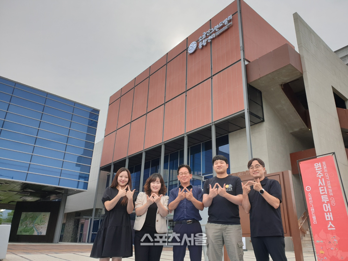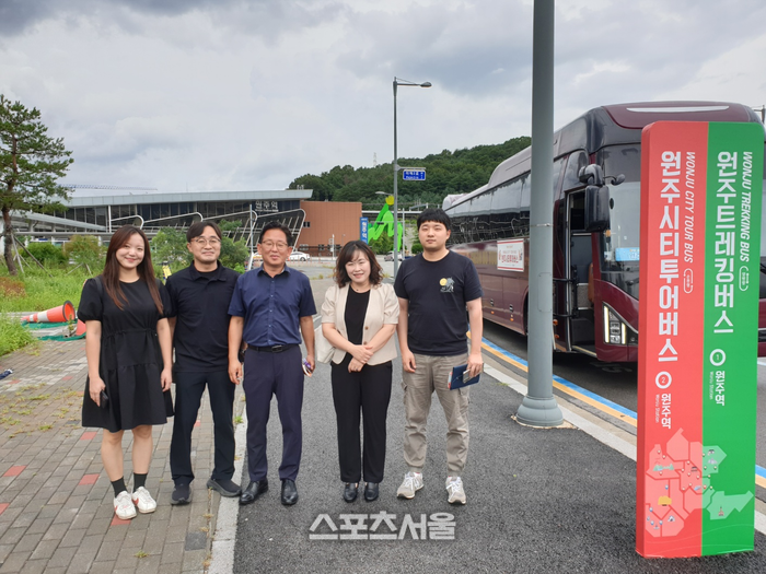[스포츠서울ㅣ원주=김기원기자]홍순필 관광과장, 마이스팀(김미애 팀장, 최우진 주무관, 황다슬 주무관)과 마케팅팀 차석 김일구 주무관이 마이스팀이 운영하는 시티투어버스와 전통시장을 연계하는 프로그램을 구상하기 위해 현장점검에 나섰다.
