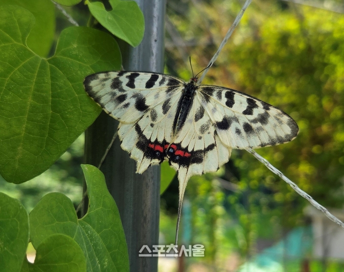 〔스포츠서울│화성=좌승훈기자〕경기 화성시는 동탄복합문화센터 야외공연장 내 조성된 체험 논에 멸종위기종인 꼬리명주나비가 쥐방울덩굴을 찾아 날아들었다고 14일 밝혔다.