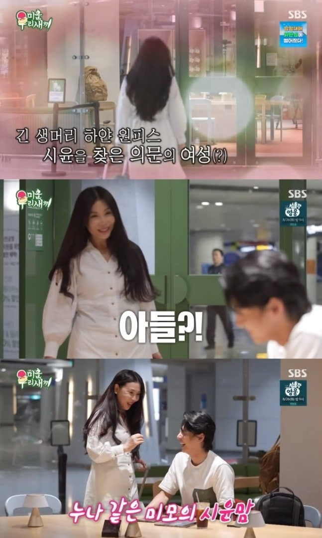 연예인 뺨치는 미모를 자랑한 여성은 윤시윤의 모친이었다. 방송 최초로 공개된 윤시윤의 어머니는 긴 생머리에 모델 같은 비율로 놀라움을 자아냈다. MC 신동엽도 “배우 같다. 너무 미인이시다”라고 극찬할 정도.