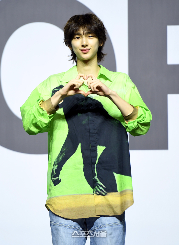 코르티스 주훈이 18일 용산 블루스퀘어에서 열린 데뷔 앨범 ‘컬러 아웃사이드 더 라인스(COLOR OUTSIDE THE LINES)’ 발매 기념 미디어 쇼케이스에서 포즈를 취하고 있다.
