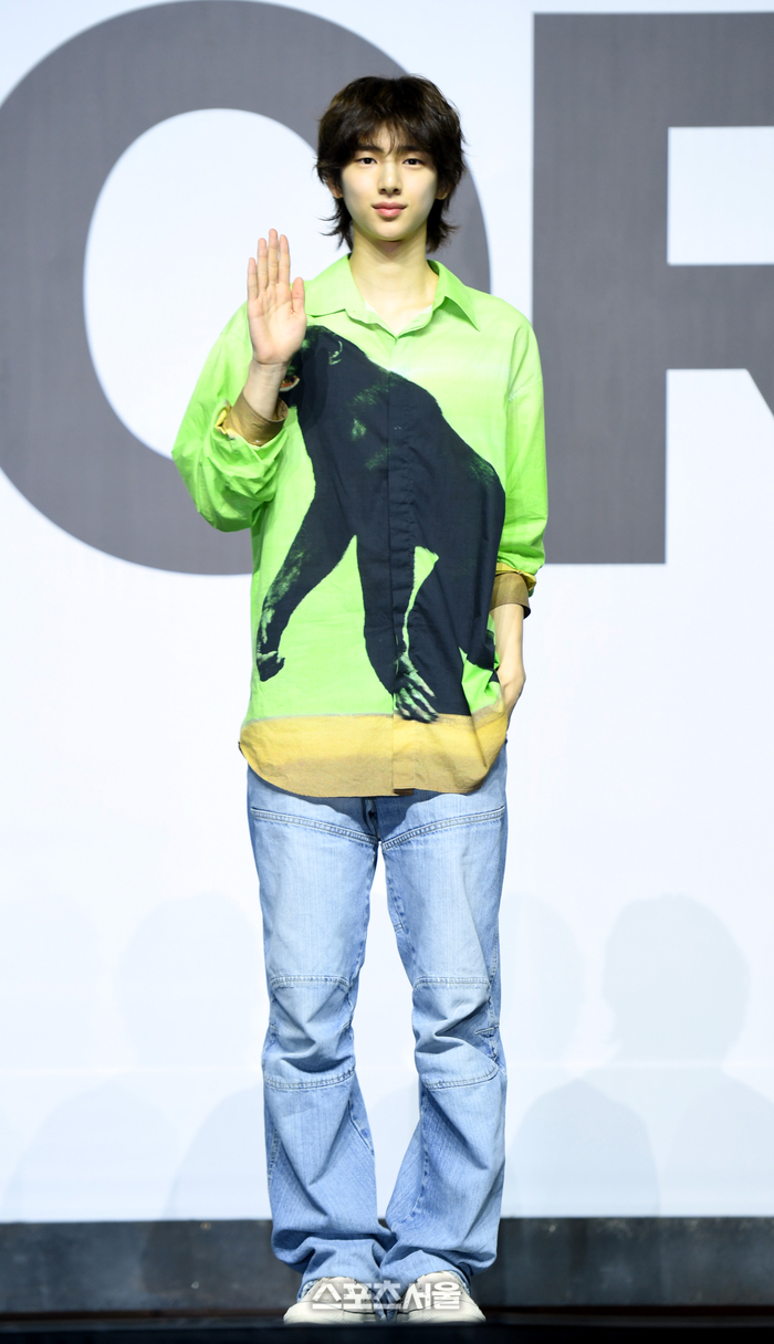 코르티스 주훈이 18일 용산 블루스퀘어에서 열린 데뷔 앨범 ‘컬러 아웃사이드 더 라인스(COLOR OUTSIDE THE LINES)’ 발매 기념 미디어 쇼케이스에서 포즈를 취하고 있다.