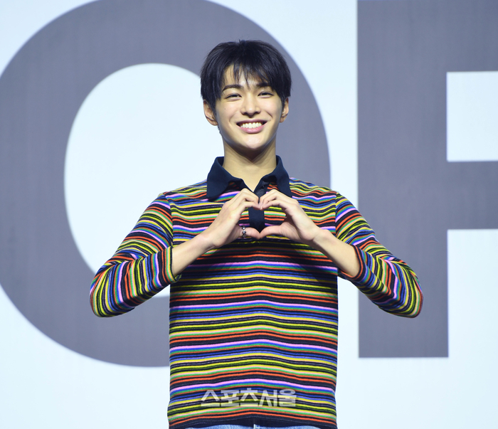 코르티스 건호가 18일 용산 블루스퀘어에서 열린 데뷔 앨범 ‘컬러 아웃사이드 더 라인스(COLOR OUTSIDE THE LINES)’ 발매 기념 미디어 쇼케이스에서 포즈를 취하고 있다.