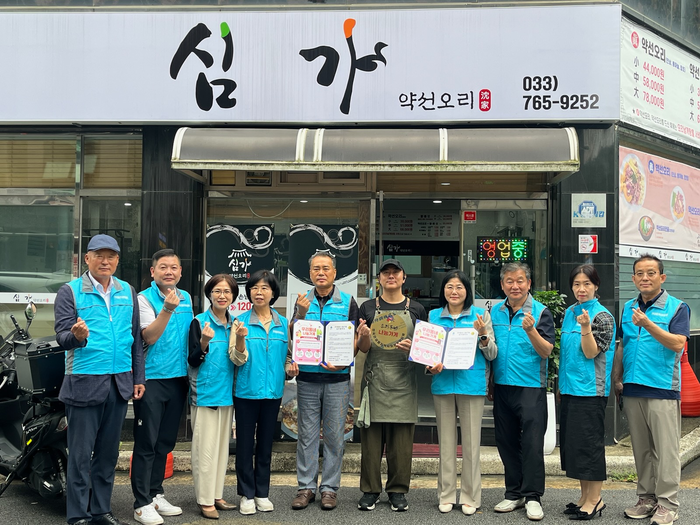 [스포츠서울ㅣ원주=김기원기자]원주시 반곡관설동지역사회보장협의체(위원장 민병태·진연석)는 지난 14일 심가약선오리(대표 심영호)와 우리동네 나눔가게 55호점 업무협약을 체결하고 현판식을 진행했다.