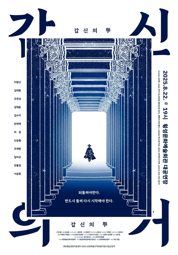 <갑신의거>는 예술경영지원센터 ‘2025 공연예술유통지원사업’ 선정작으로, 실존 인물 김옥균이 시간의 경계를 넘어 과거로 돌아가 미완의 혁명인 갑신정변에 다시 도전하는 이야기를 상상력 넘치게 그렸다.
