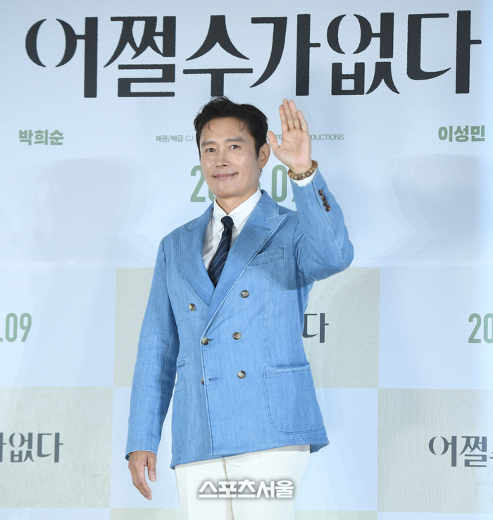 이병헌이 19일 CGV 용산아이파크몰에서 열린 영화 ‘어쩔수가없다’ 제작보고회에서 포즈를 취하고 있다.
