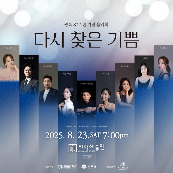 [스포츠서울ㅣ원주=김기원기자]광복 80주년 기념 음악회가 오는 23일(토) 오후 7시 원주 치악예술관에서 열린다.