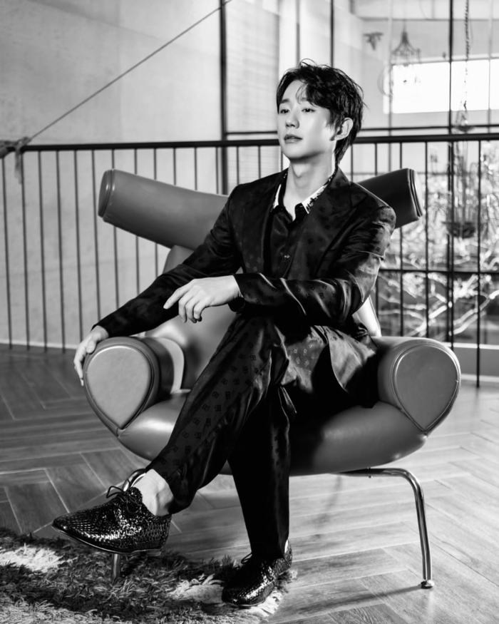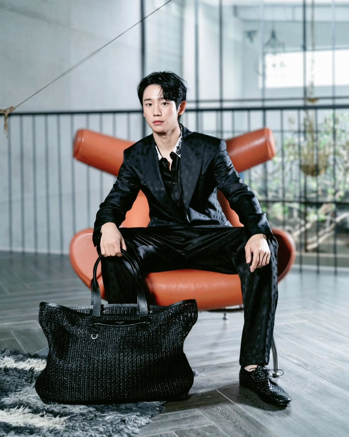 화보 속 정해인은 세련된 블랙 수트에 독특한 패턴 셔츠를 매치, 고급스러운 무드와 남다른 핏을 자랑했다. 특히 가죽 로퍼와 대형 블랙 위빙 토트백을 포인트로 더하며 특유의 도시적이고 세련된 분위기를 한껏 발산했다.