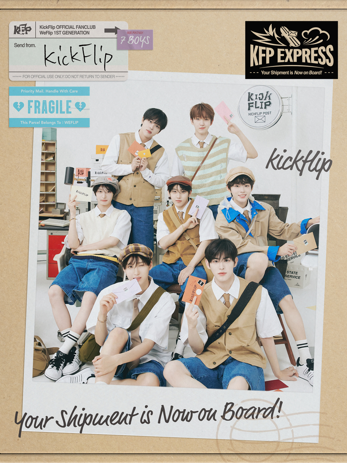 킥플립 데뷔 날짜 1월 20일에 맞춰 오후 1시 20분에 오픈된 이번 콘텐츠에는 킥플립 특유의 자유로운 분위기와 개성이 드러났다. 계훈, 아마루, 동화, 주왕, 민제, 케이주, 동현이 스케이트보드를 타고 위플립에게 첫 번째 러브레터를 전하는 세상에서 제일 힙한 우체부로 변신한 것. ‘킥플립 우체국’ 콘셉트 속 우편물 수거, 우표 부착, 실링 왁스 찍기 등 각자 역할을 맡은 일곱 멤버는 개구진 미소와 훈훈한 비주얼로 팬심을 끌어당겼다.