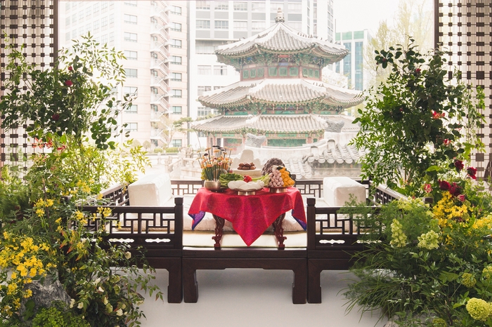 ‘자정향’ 패키지가 진행되는 웨스틴 조선 서울 2층 라일락홀은 이 호텔만이 가진 독특하고 매력적인 공간이다. 이곳의 가장 큰 특징은 통창을 통해 덕수궁의 황궁우(石造殿)를 바라볼 수 있다는 점이다.