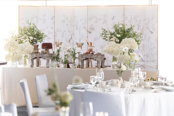 테이블 장식을 위한 센터피스 생화장식은 전체적인 공간의 분위기를 한층 더 우아하고 품격 있게 만들어준다. 커팅용 케이크는 돌잔치의 하이라이트인 케이크 커팅 세레모니를 위한 필수 요소다. 건배제의용 스파클링 와인 1병은 모든 참석자들이 함께 아이의 미래를 축복하며 의미 있는 건배를 할 수 있도록 준비된 특별한 서비스다.