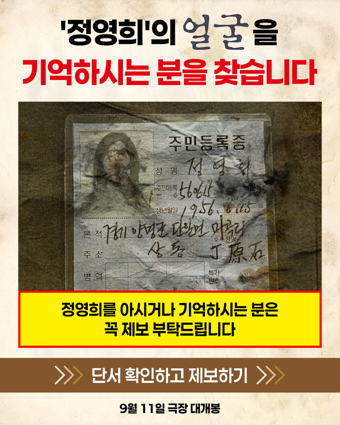 ‘얼굴’ 측은 21일 작품의 시놉시스에 맞춰 40년간 지워진 ‘정영희’의 얼굴을 제보하는 홈페이지를 오픈했다.
