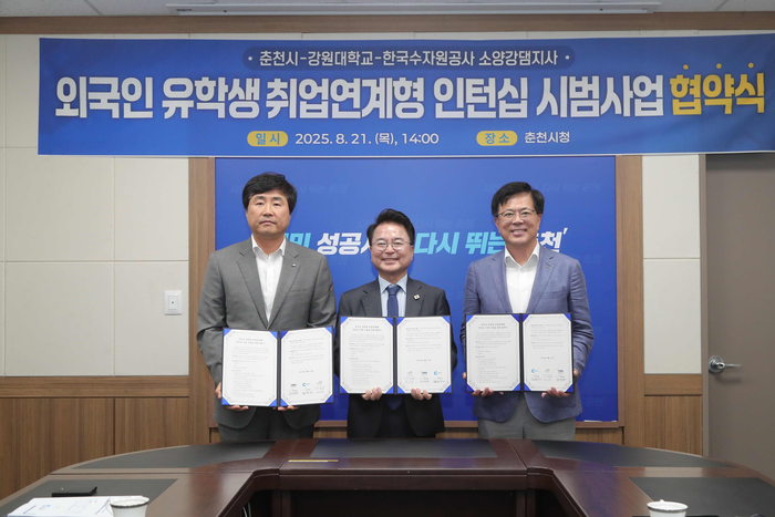 춘천시(시장 육동한)와 강원대(총장 정재연), 한국수자원공사 소양강댐지사(지사장 김도균)는 21일 시청 중회의실에서 업무협약(MOU)을 체결했다.