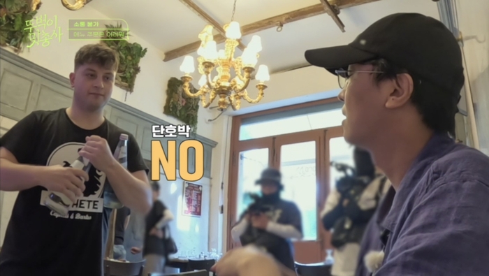 하지만 위기는 여기서 끝나지 않는다. 이정신이 “스테이크는 레어로 부탁한다”라고 조심스레 전하자, 직원이 “굽기는 우리가 알아서 할게”라며 또다시 ‘단호박’ 멘트를 날린 것. 권율은 “전체적으로 손님에게 친근한 느낌은 아니다”라며 씁쓸한 표정을 지었다. 이정신은 “한국에도 욕쟁이 할머니 계시잖아요. 스타일이죠, 스타일”이라고 말하자, 권율이 “근데 저분은 할머니가 아니지 않냐”라며 하소연했다.