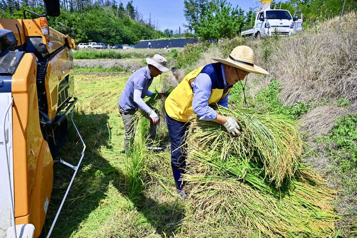 [스포츠서울ㅣ김기원기자]이병선 속초시장은 8월 22일 속초시 장천마을(장사동 63번지)에서 진행되는 2025년 속초시 첫 벼베기 현장을 방문해 벼베기를 직접 체험하며 농가의 어려움을 청취하고 감사의 마음을 전했다.