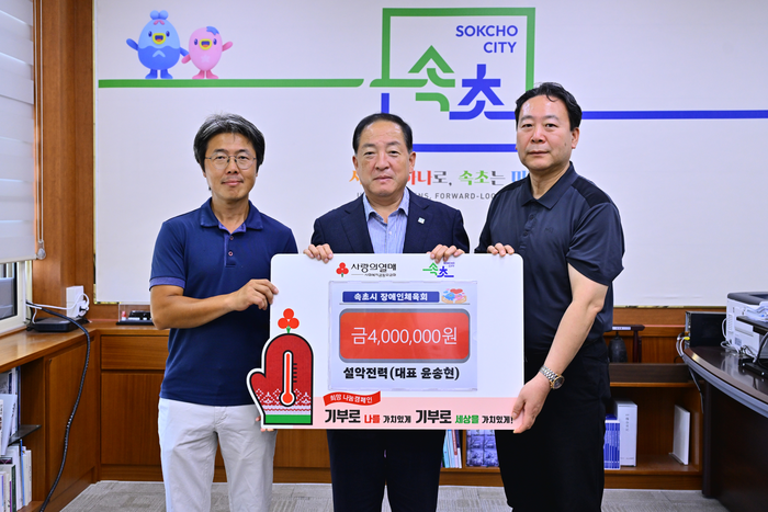 전국 | 강원 설악전력, 속초시장애인체육회 후원금 전달 입력2025-08-22 16:08:42 북마크 페이스북 트위터 SNS 더보기 가글자크기설정 인쇄 SNS 더보기 닫기 네이버밴드 네이버블로그 URL복사 글자크기 설정 메뉴 닫기 글자크기 설정 시 다른 기사의 본문도동일하게 적용됩니다. 가 가 가 가 가 [스포츠서울ㅣ김기원기자]설악전력(대표 윤송현)은 8월 22일 속초시청을 방문해 이병선 속초시장에게 장애인체육 육성지원 후원금 4백만원을 전달했다.acdcok4021@sportsseoul.com 기사추천 0