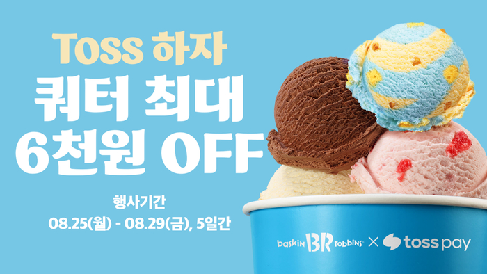 29일까지 배스킨라빈스 매장에서 쿼터 사이즈(1만 8500원)를 구매하면 즉시 3000원이 할인되며, 토스페이로 전액 결제 시 추가 3000원이 할인돼 최대 6000원의 혜택을 받을 수 있다. 프로모션 참여 매장 등 자세한 내용은 배스킨라빈스 공식 홈페이지에서 확인할 수 있다.